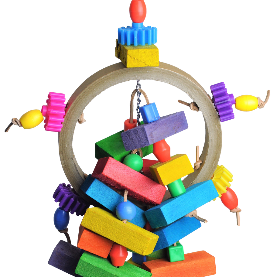 The Dream Catcher Bird Toy combines colorful wooden pieces and dangling ropes to spark curiosity and play. Designed for chewing, climbing, and enrichment, it keeps parrots active and happily engaged.
